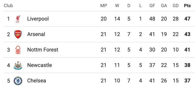 在经历了各项赛事三场不胜的煎熬过后,阿森纳终于在周三晚的北伦敦德比以一场逆转重回正轨。由于利物浦在一天前被诺丁汉森林逼平,因此枪手在多赛一场的情况下,将自己和榜首之间的差距缩小到了4分。